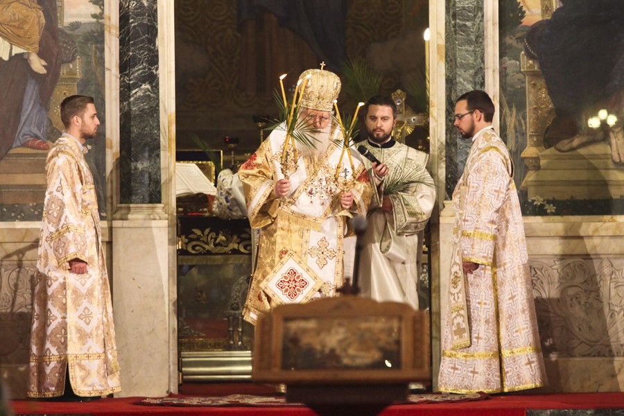 Тържественото богослужение е за големия църковен празник Вход Господен в Йерусалим.