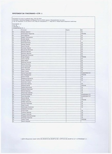 Патриотите ВМРО, Глас народен публикуваха в социалната мрежа протокол от гласуването на бюджета на Община Русе.