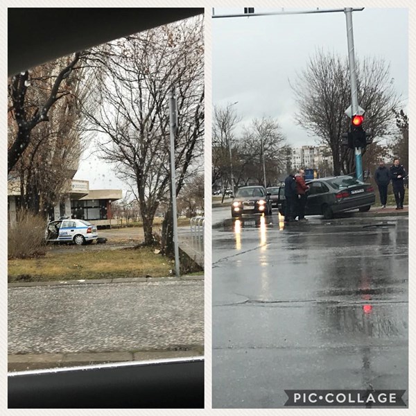 Полицейски патрулен автомобил и лека кола "Рено" са се ударили, като вследствие на удара специализираният автомобил е излетял на тротоара пред Пощата и се е врязал в дърво. Като по чудо на пешеходната зона е нямало хора и е избегнат по-сериозен инцидент. Според очевидци полицейският автомобил е бил с включени сирени, съобщи Traffic News.