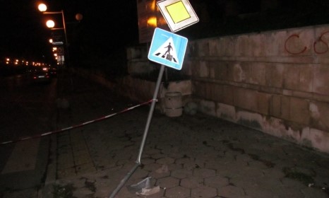 Патрулка се удари в пътен знак на бул. "Славянски" до пл. "Кристал" в Шумен, за да избегне удар с лек автомобил.