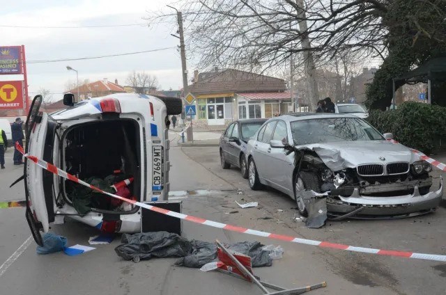 Полицейската кола се ударя в паркиран автомобил, той се забива в друга кола, а патрулката се преобръща напречно на ул. „Стефан Стамболов”.