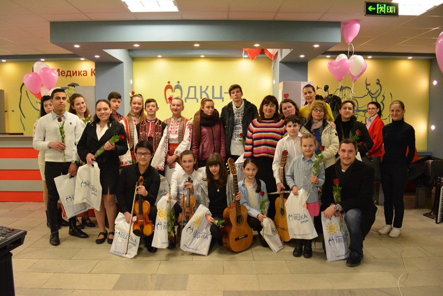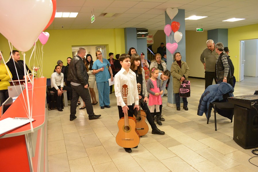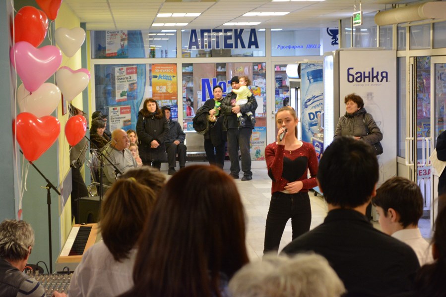 Любовта и музиката традиционно се сливат в днешния ден. Младите изпълнители от 4-ти до 12-ти клас от различни паралелки на Национално училище по изкуствата "Проф. Веселин Стоянов" – Русе в продължение на час напомняха на минаващите пациенти за радостта от живота. Разположени на импровизирана сцена във фоайето на ДКЦ-2, децата със своите китари, флейти и цигулки изпълняваха класически любовни произведения. Разбира се не липсваха и танцови и вокални изпълнения.