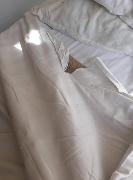 "Болнична стая в Клиниката по Гастроентренология в Царица Йоана - ИСУЛ, в 21 век ! Възглавницата е без калъвка и е съшита с телбод! Чаршафите са скъсани!