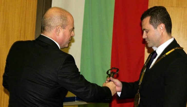 Досегашният кмет Пламен Стоилов, който предаде символите на общината на Милков, пожела да продължи ускореното развитие на Русе.