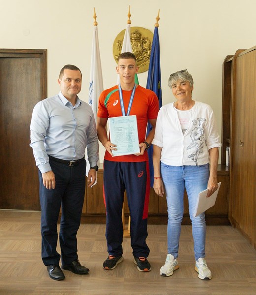 Освен паричната премия, кметът връчи на младия кануист и медал с герба на Русе, като му пожела да носи родния град в сърцето си и да остане да се състезава за него.