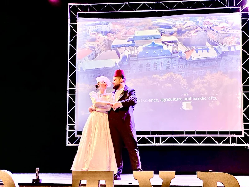 Празничната програма завърши с представяне на красотите на България чрез танци и традиционната за града торта „Гараш“.