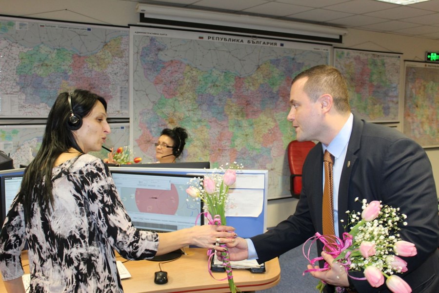 Отбелязването на деня на Единния европейски номер за спешни повиквания 112 бе повод кметът на Русе Пенчо Милков и председателят на Общински съвет - Русе Иво Пазарджиев да зарадват дамите от дежурния екип на „Районен център 112“ с букети от лалета и топли пожелания.