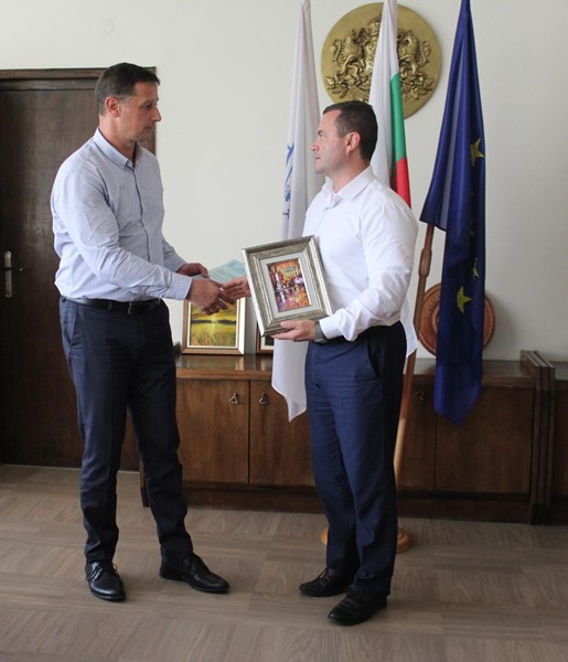 Пенчо Милков посрещна в кабинета си ректора на Икономическия университет във Варна проф. Евгени Станимиров във връзка с представянето на книгата му "Многомерна стратегия за вашия бизнес" в Русе.