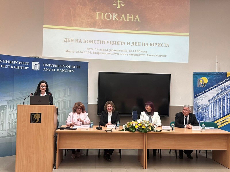 Русенският университет „Ангел Кънчев" организира тържествено честване на Деня на българската Конституция и професионалния празник на юристите, който традиционно се отбелязва на 16 април. Събитието събра множество официални гости, сред които председателя на Народното събрание доц. Наталия Киселова, кмета на община Русе Пенчо Милков, областния управител Драгомир Драганов, представители на местната и съдебната власт, членове на академичната общност и студенти.