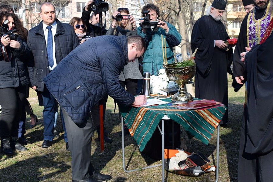 По време на церемонията в Парка на възрожденците, където ще се издига монументът, бе извършен водосвет от Русенския митрополит Наум и свещеници.