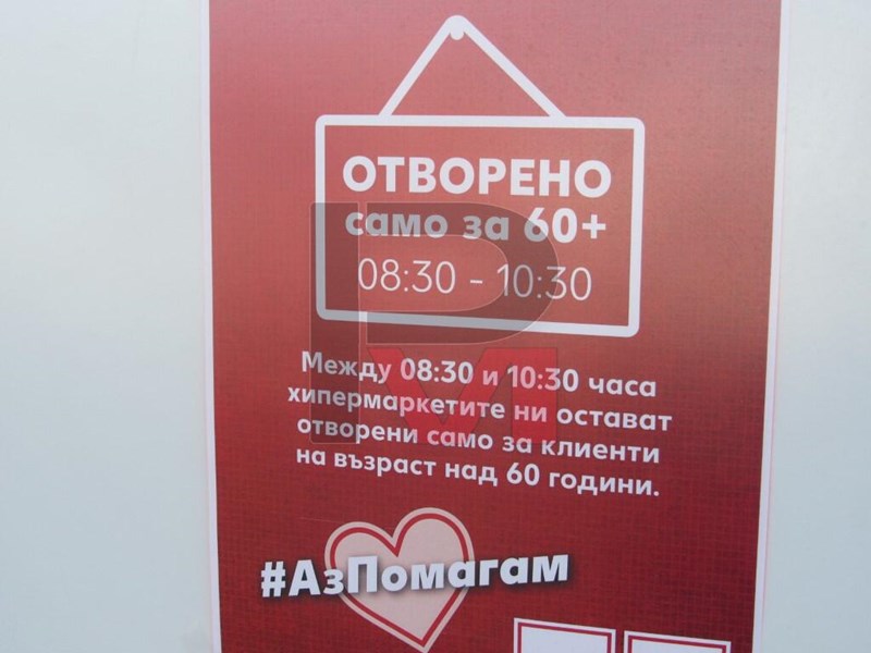 Големите хипермаркети се бяха постарали да дадат актуална информация на клиентите си, които все още не бяха разбрали за промените. С табели на входа те ги информират за ограниченията и определените часове за пенсионери над 60 години. Пред магазините вече няма толкова много пазаруващи, а опашките изглеждат големи заради спазването на дистанция от чакащите клиенти.