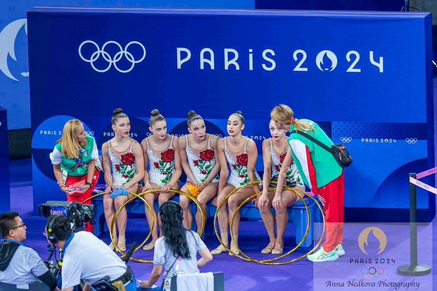 Ансамбълът получи оценка от 37.700 за изпълнението с пет обръча, като резултатът включва 21.700 за трудност, 8.500 за артистичност и 7.500 за изпълнение. Тази оценка ги постави на второ място, веднага след отбора на Италия, който събра 38.200 точки. В съчетанието с три ленти и две топки българките отново бяха почти безупречни и спечелиха 32.700 точки (17.800 за трудност, 8.300 за артистичност и 6.600 за изпълнение). В това изпълнение те отстъпиха само на Украйна, която събра 33.500 точки, докато италианките допуснаха грешки и завършиха с 31.150 точки.