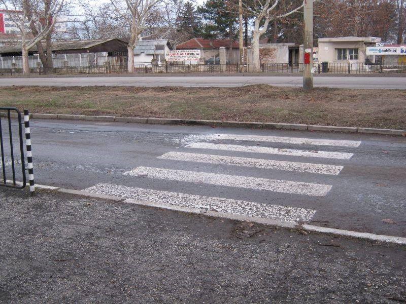 Всяка пролет и есен тази пешеходна пътека се боядисва. И всяка пролет и есен тя продължава да води към... нищото. Или към тревната площ, или към високоскоростната отсечка на бул. "Липник". Намира се пред училище "Васил Априлов".
