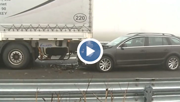 Първата и най-опасна верижна катастрофа, с изтичане на газ, стана на 142-рия километър. В гъстата мъгла лек автомобил се завърта на магистралата и се блъска в мантинелата. В него се удрят още две коли.