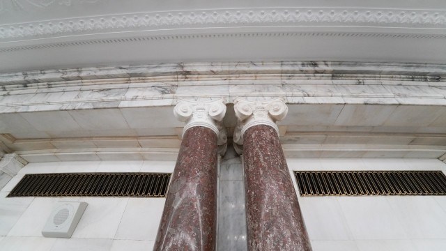 „Капителите на колоните в пленарната зала не съдържат символи, свързани с комунистическия режим. Те са разработени в коринтски стил и са богато орнаментирани с растителни елементи, декоративни фризове и др.", казват служителите на Народното събрание.