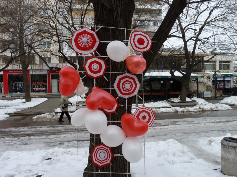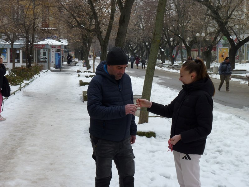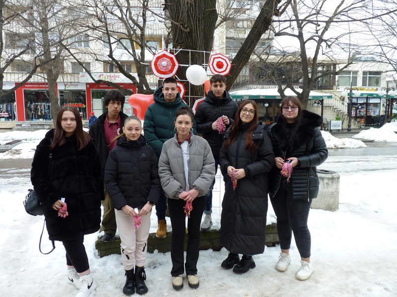 Младежите изработиха ръчно символите на Баба Марта и ги подариха на граждани