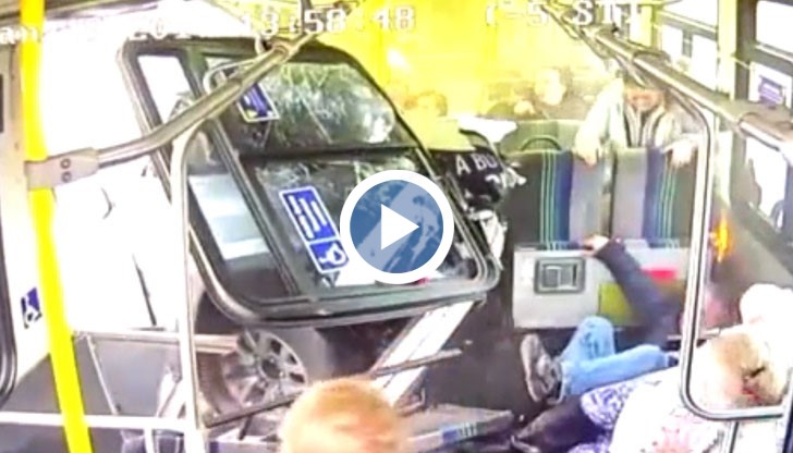 Така вместо да намали скоростта преди светофара, тежкият автомобил излязъл от платното и се врязал в спрелия на червен светофар автобус.