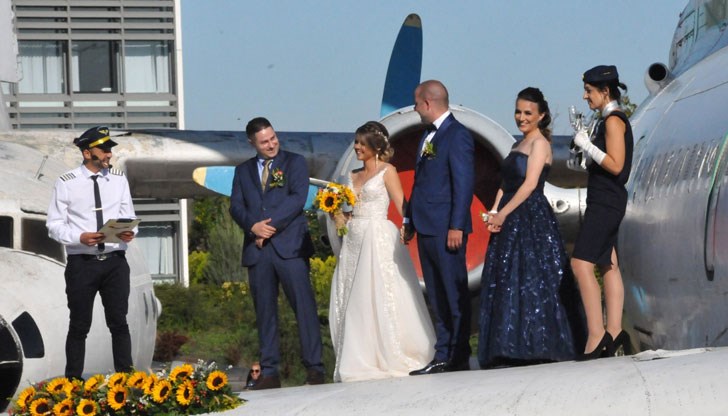 Бургазлийката Поли и софиянецът Мартин избрали да си кажат заветното "да" на крилото на самолета, заради професията на младоженеца. Мартин е пилот на самолет. Поли работи в отдел "Човешки ресурси" в IT компания. Двамата живеят и работят в София. За най-щастливия ден в живота си обаче те избраха родния град на булката. А за да бъде ритуалът пълен, от сватбената агенция решили човекът, който ще извърши ритуала да бъде облечен, като пилот.