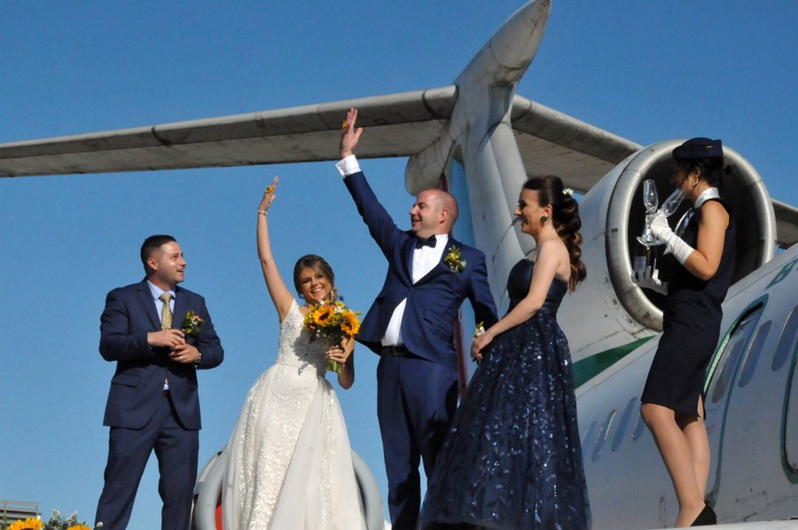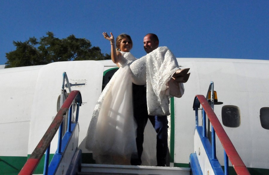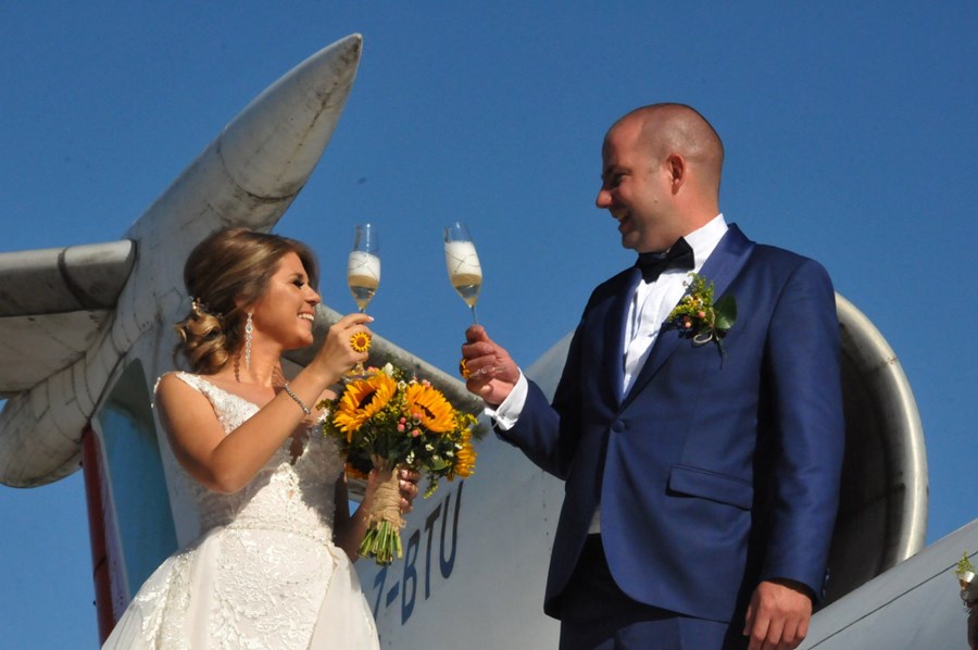 Пилот венча влюбените Поли и Мартин на крилото на самолет Ту - 154.