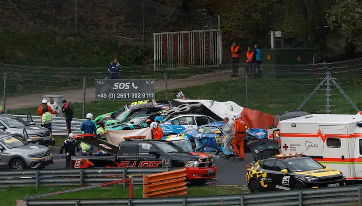 Масовият сблъсък се е случил още в ранните етапи на надпреварата от сериите NLS. В третата обиколка на тесния участък "Клостертал" общо седем автомобила са загубили контрол и са се ударили един в друг. Първоначалните неофициални информации сочат, че възможната причина за липсата на сцепление е голям разлив на масло по асфалта.