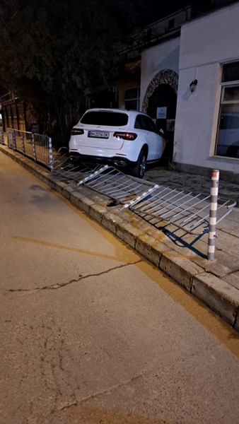 "Мерцедесът" е прегазил метални ограждения и се е качил на тротоара