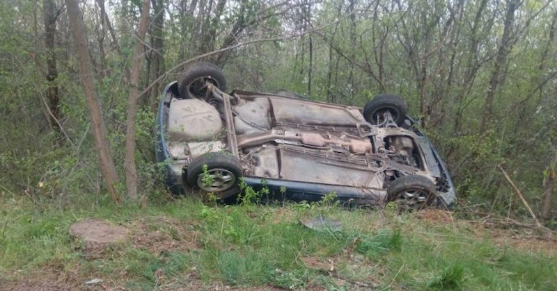 Автомобилът му се е преобърнал по таван в крайпътните храсти