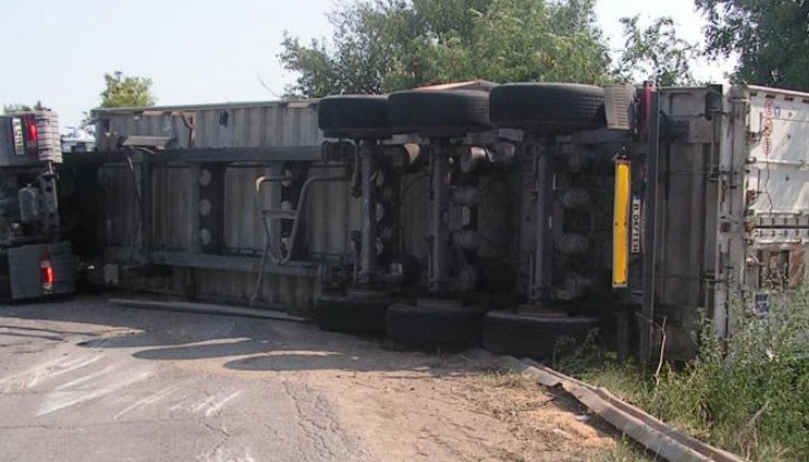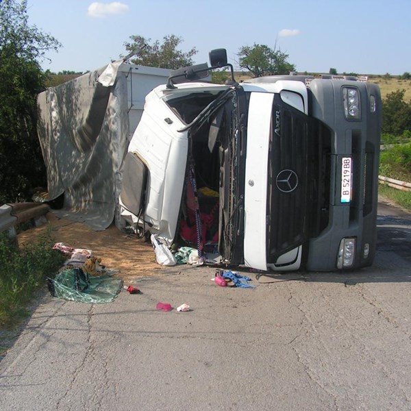 Пиян шофьор обърна товарен камион, пълен със зърно.