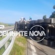 Движението в района на катастрофата е затруднено. Образувала се е тапа. Екип на "Пътна полиция" регулира трафика.
