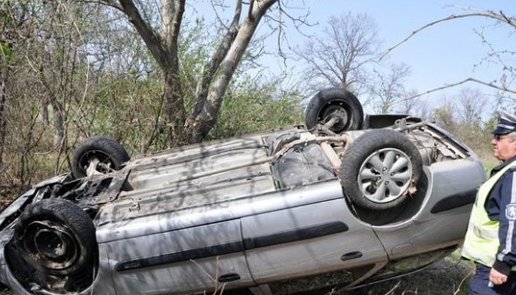 Лек автомобил "Пежо 307", управляван от 28-годишен мъж, при движение с несъобразена скорост, напуснал пътя вляво, влязъл в отводнителен канал, след което се преобърнал по таван на платното за движение.