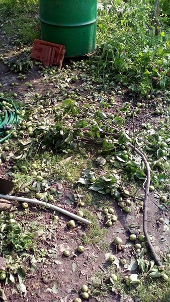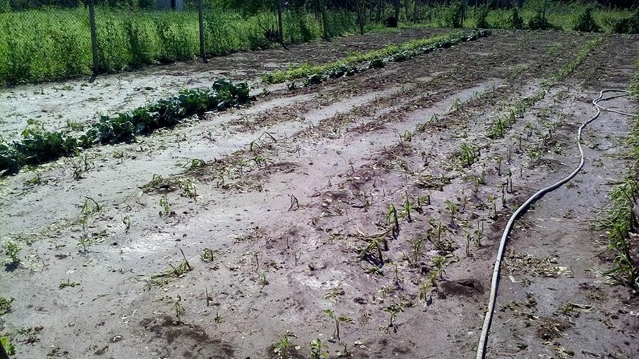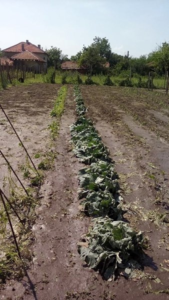 Знам, че не само ние пострадахме, а и много други села и хора. Да, гледах по новините, че хиляди декари са били унищожени, горко им на тези земеделци, дори не са си застраховали нивите и продукцията, но и на мен ми се плаче, като погледна градината си, нищо че не съм крупен производител. Гледам си зеленчуци от години и тази година се погрижих за всичко да е засадено, полято и окопано, въпреки умората и болките и ето, че мина тази стихия, този ужас и ми отне всичко за минути – месеци труд и накрая да гледам как всичко бе убито, всичкия този кошмар пред очите ми! Вижте на снимките какво остана ... Нищо – всичко е буквално смляно...