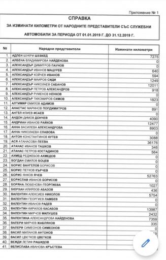 След разкритието, че колите на НСО са изминали над ДВА МИЛИОНА И ПОЛОВИНА километра за 2019г. возейки охраняваните от службата лица (Пеевски, Доган, Борисов, Цацаров, Гешев, Пламен Георгиев, Цецка Цачева, Радев и др.), БОЕЦ решиха да получат и огласят информация за изминатите от народните представители километри със служебните коли на парламента. Изисквахме по ЗДОИ пълна справка и публикуваме резултата. Всеки сам може да анализира информацията.
