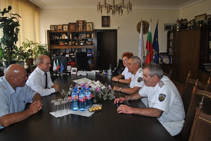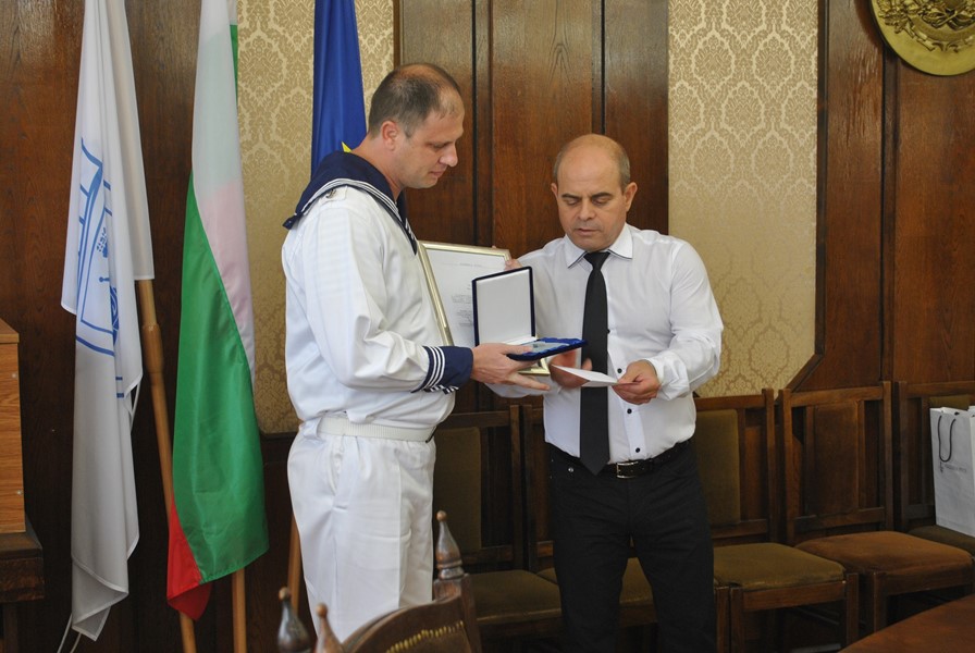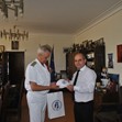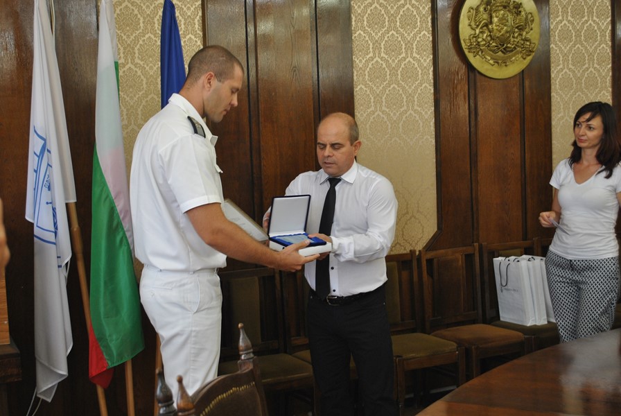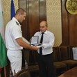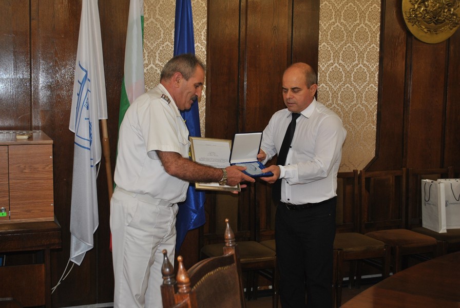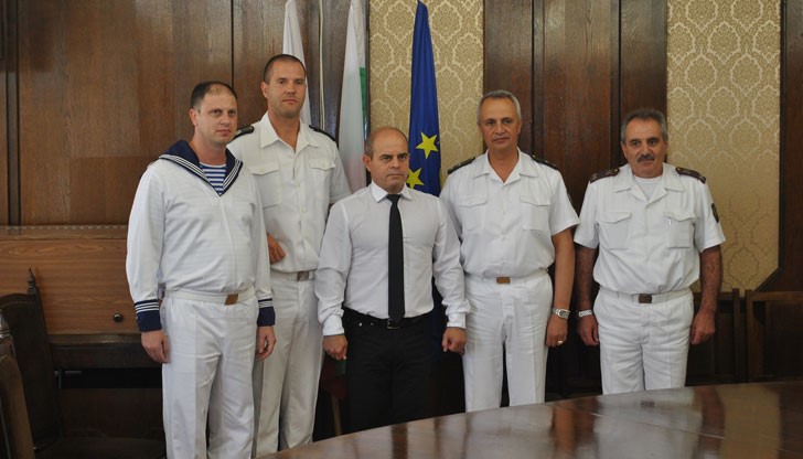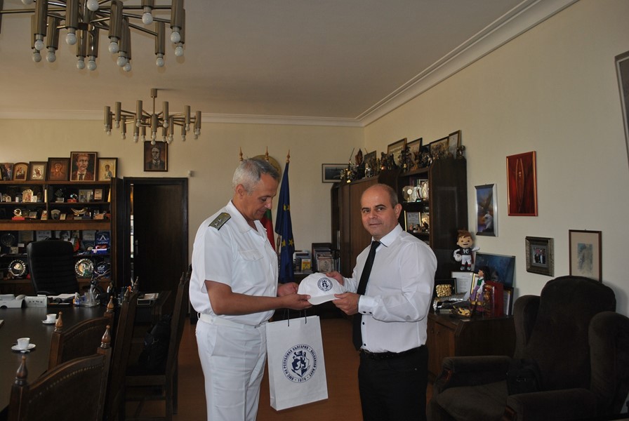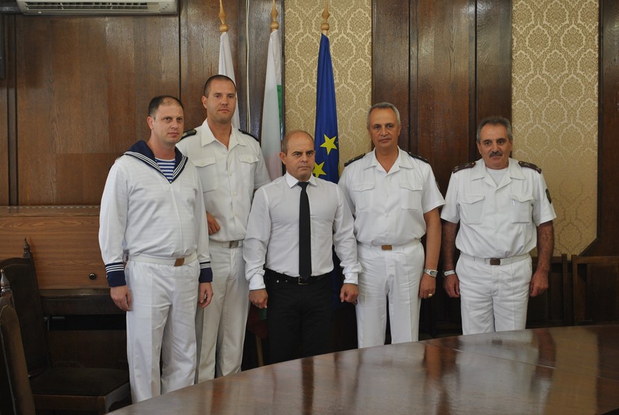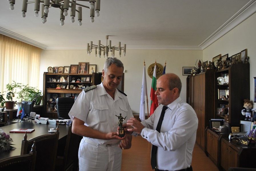 Преди срещата си с медиите ръководството на ВМС се срещна с кмета, който връчи на контраадмирал Петев статуетка на емблематичния за града Паметник на свободата.