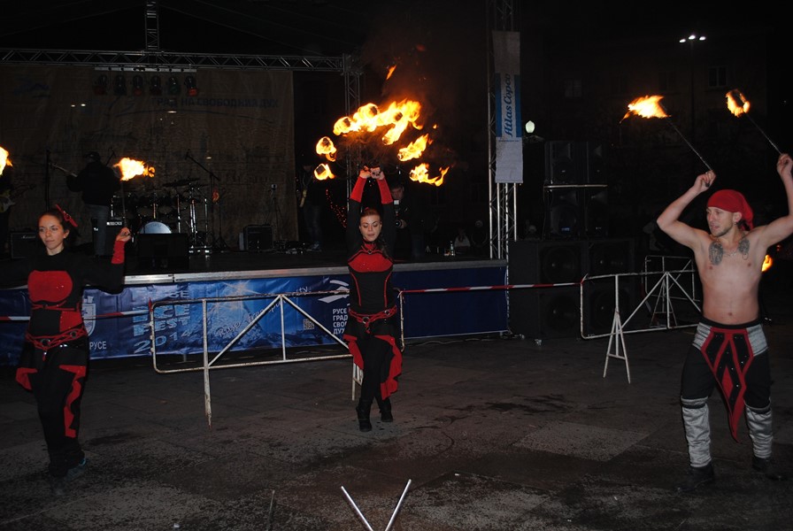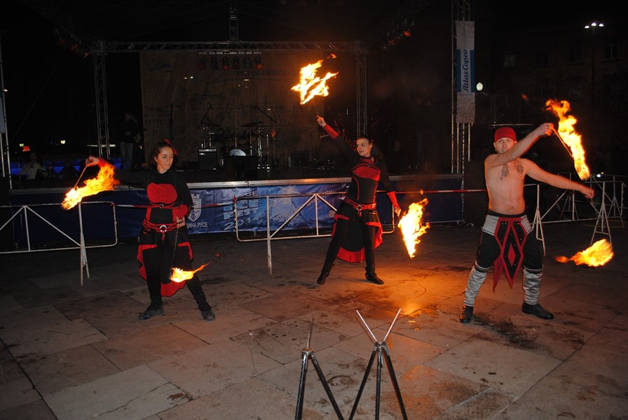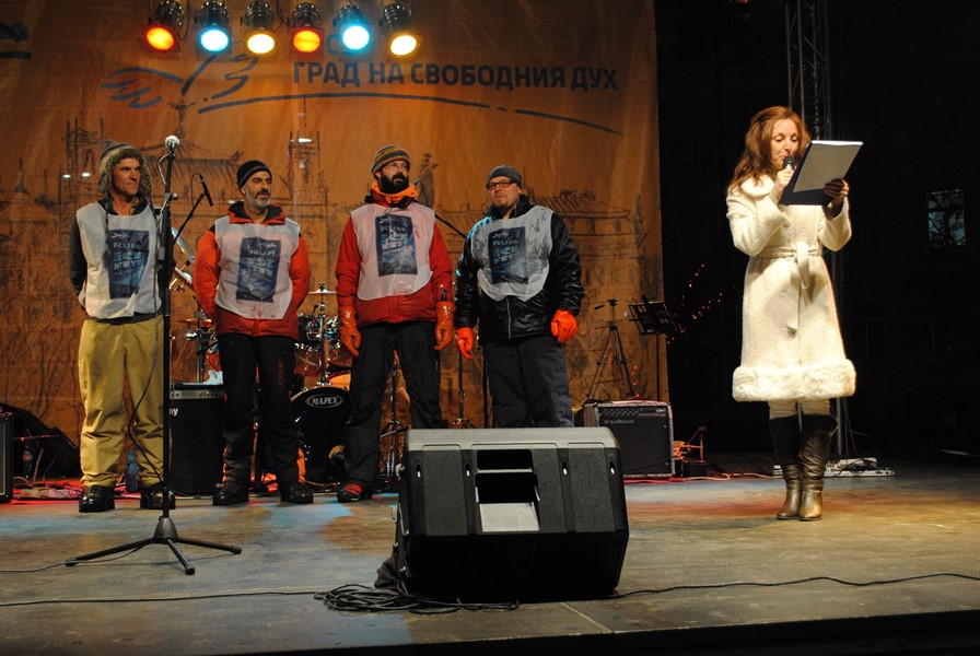 На сцената пред хотел „Дунав плаза“ бяха представени и творците, които създават най-голямата атракция – ледените фигури. Това са Руслан Коровков от Русия, който е възпитаник на Художествената академия в София, Дилън Корбет от Канада, двамата испанци - Хуан Карлос Мартинес от Мадрид и Луис Рибалта от Барселона и русенецът Виктор Царски, който същата вечер пътуваше към родния си град. Програмата продължи с концерт на русенската група „Old Guns“, която изпълни популярни парчета на български и чужди рок-групи.