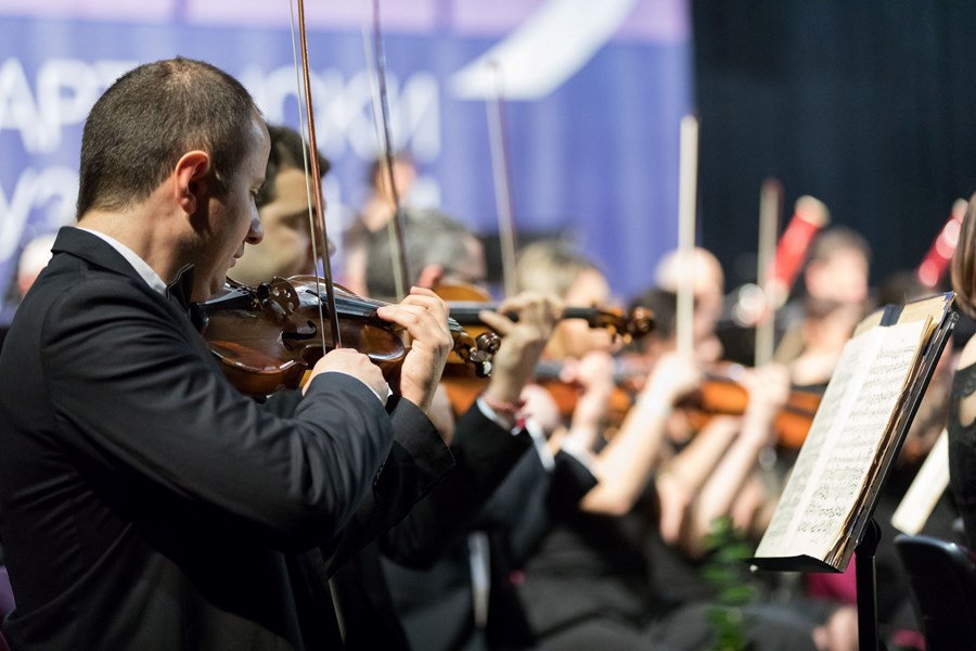 Вечерта продължи с участието на звездния състав Минчо Минчев – цигулка, Робърт Коен – виолончело и Емил Табаков, който дирижира Софийска филхармония. Те изпълниха Двоен концерт за цигулка, виолончело и оркестър от Й. Брамс и световната премиера на Симфония №9 от самия Емил Табаков. Водеща на тържественото откриване беше актрисата Ралица Константинова.