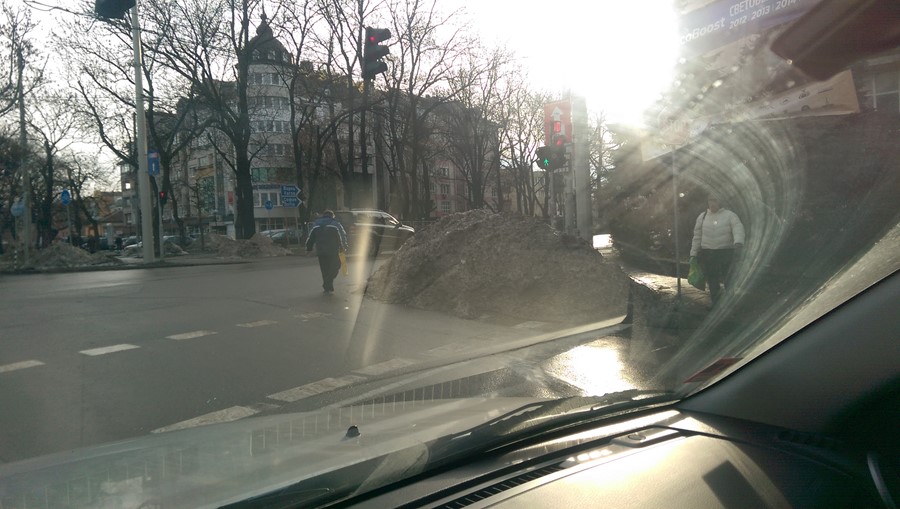 В коментар към снимките си читателят уточнява къде точно са направени, макар че подобни камари сняг могат да се видят навсякъде в града.
