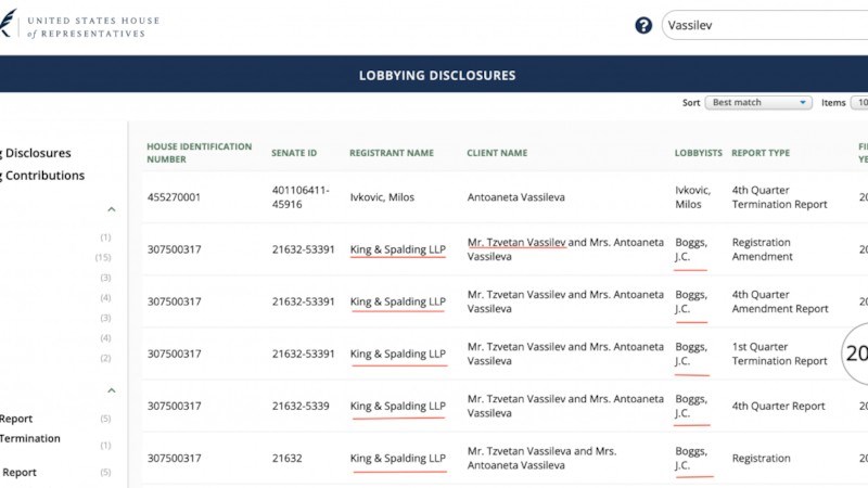 Справка в публичните регистри на лобистите сочи, че за първото тримесечие на 2023 г. Цветан и Антоанета Василеви са продължили договора си единствено с кантора „King & Spalding LLP“, по чиято сметка в началото на декември е преведена сумата от 350 000 долара. А на 23 февруари 2023 г. американският лобист Д.С.Богс е подал отчета си за това, че представлява Василеви пред американския конгрес и сенат по въпроси, свързани с налаганите от САЩ санкции.