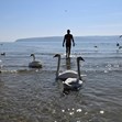 Независимо от факта, че температурата на морската вода е едва 6-7 градуса, някои по-смели ентусиасти не се поколебаха да се потопят във водите на Черно море. Вълнението на морето е слабо - между 1 и 2 бала, което допълнително насърчава любителите на морските къпания.