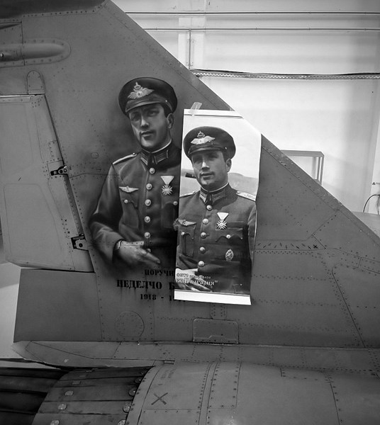 Върху крилото на учебно-бойния изтребител в авиобаза “Граф Игнатиево” грее образът на поручик Неделчо Бончев, а майстор на творбата е пловдивчанинът Петър Йовчев – Хари.