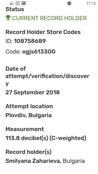 "Щастлива и горда с рекорда на Гинес. Вписаха ме в историята за най-силния глас на планетата! Току-що ме известиха", сподели Смиляна във Фейсбук профила си. Новината Захариева научила преди часове по време на посещение при будистки монаси в Шри Ланка.