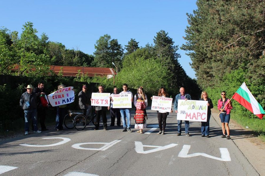 Докато протестиращите кубратчани пресичаха пътеките на двата изхода на града се образуваха колони от автомобили, камиони и автобуси. На тях протестиращите раздаваха балончета в бяло, зелено и червено с надписи „Добре дошли на Марс“, обясниха им и защо протестират, всички шофьори бяха солидарни с исканията им и не изразиха недоволство от това, че се налага да чакат.