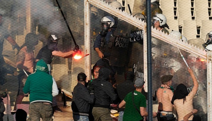 Властите задържаха 18-годишен грък за участие в сблъсъците и започнаха разследване. Задържаният е обяснил, че нападението е било организирано от друг мъж, който е раздал сигнални ракети на запалянковците.