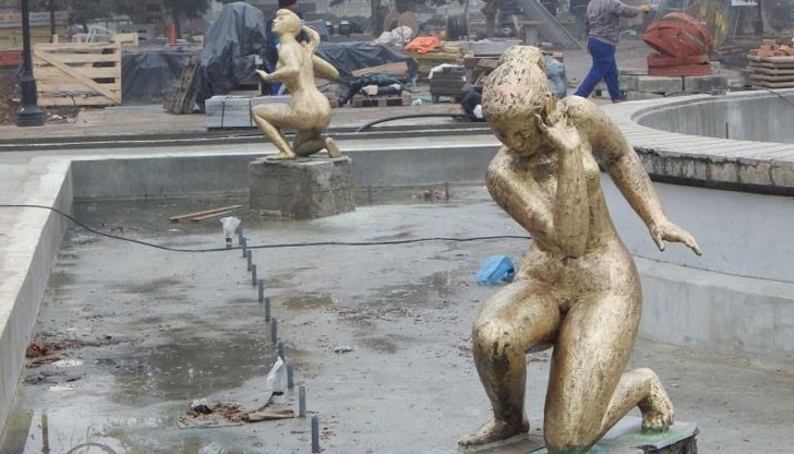 Почистиха статуите във фонтана на площад "Батенберг"