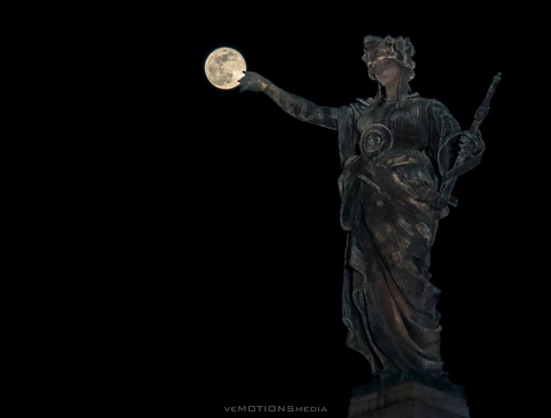 Според автора на публикацията кадърът е заснет на 19 февруари, в 19:11 часа. Вижда се Статуята на свободата в Русе, която сякаш "държи" в ръката си пълната луна.