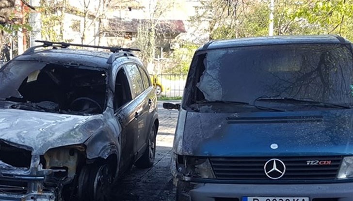 Горели са джип „Шевролет Каптива” и микробус „Мерцедес”, купен само преди седмица. Пламъците лумнали около 3 часа в нощта срещу понеделник, пише 24 часа.