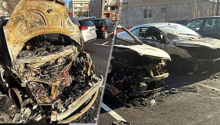Три леки автомобила са напълно унищожени след пожар в Казанлък, като основната версия на разследващите е умишлен палеж.