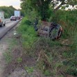 Румънско „Мицубиши“ се обърна край разклона за Пиргово, като по чудо пътниците в него се отърваха само леки наранявания.