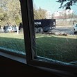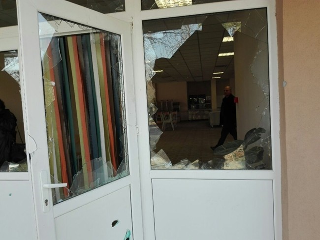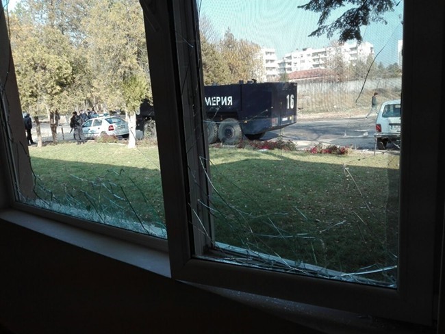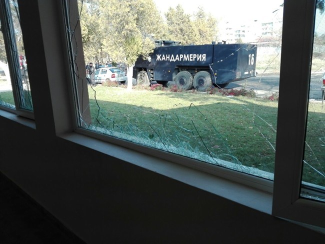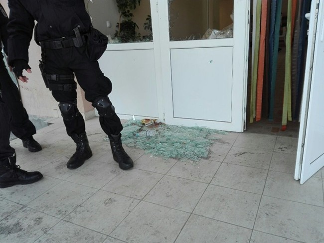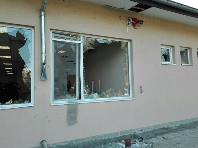 Всички прозорци на столовата на центъра за настаняване в Харманли са потрошени. Вероятно бунтът е тръгнал оттук. В сградата няма нито едно здраво стъкло, пише 24 часа.