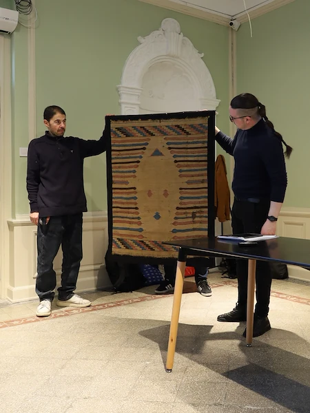 Преди официалното си представяне в Института за етнология и фолклористика с Етнографски музей (ИЕФЕМ), килимът преминава през дълга и прецизна реставрация, като част от тъканта е укрепена с ленена подложка.