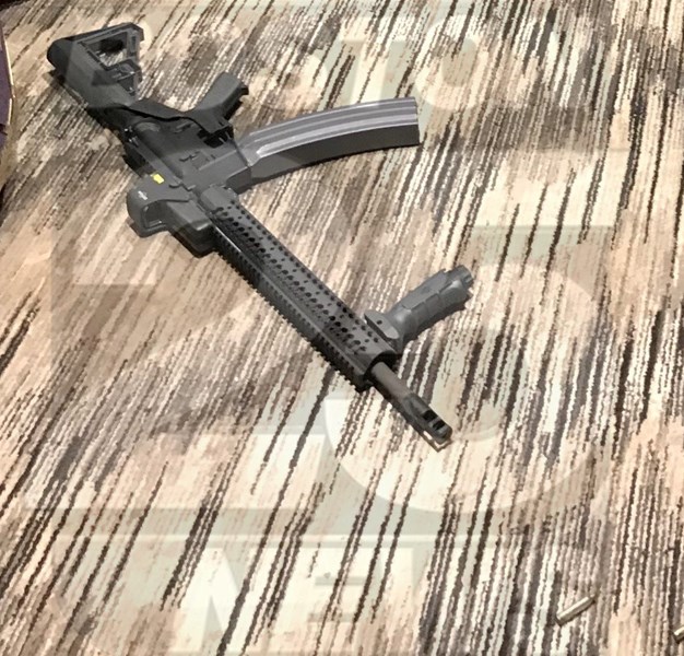 На снимките се виждат карабини AR-15, пълнители, както и много гилзи от изстреляните патрони.