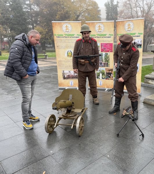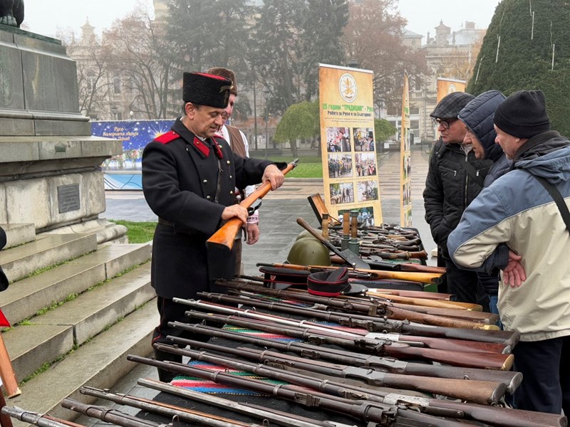 Русенският клон на Национално дружество "Традиция" подреди впечатляваща изложба на редки оръжия и униформи в центъра на града днес. Събитието, което се проведе пред Паметника на Свободата, отбеляза четвърт век от създаването на местната структура на организацията.